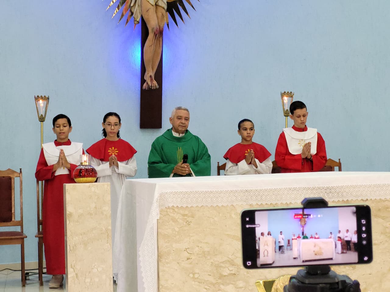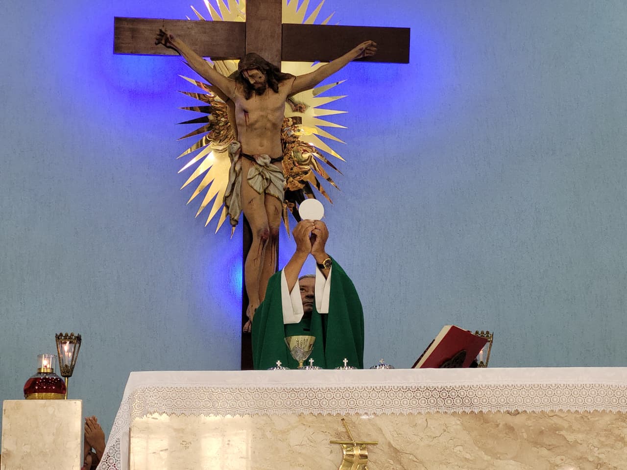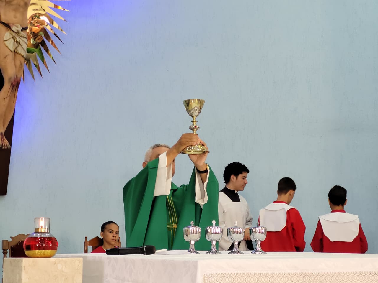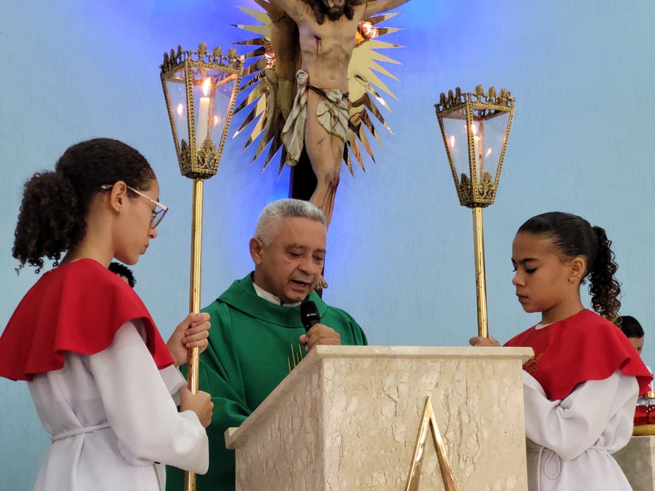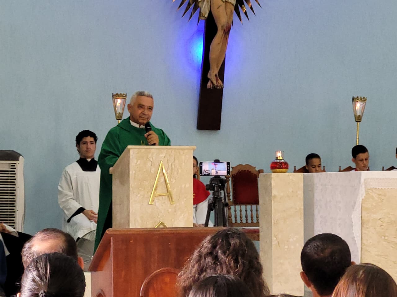 Na homilia, padre Afonso relembrou o dia em que foi acolhido pela Paróquia, em 11 de fevereiro de 2019, e falou das contribuições que pôde oferecer à comunidade nesse período e das celebrações e sacramentos que realizou junto ao povo.