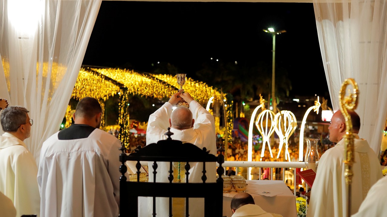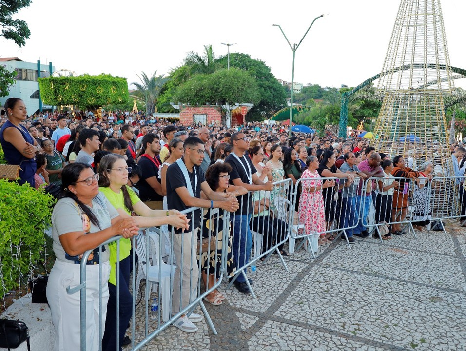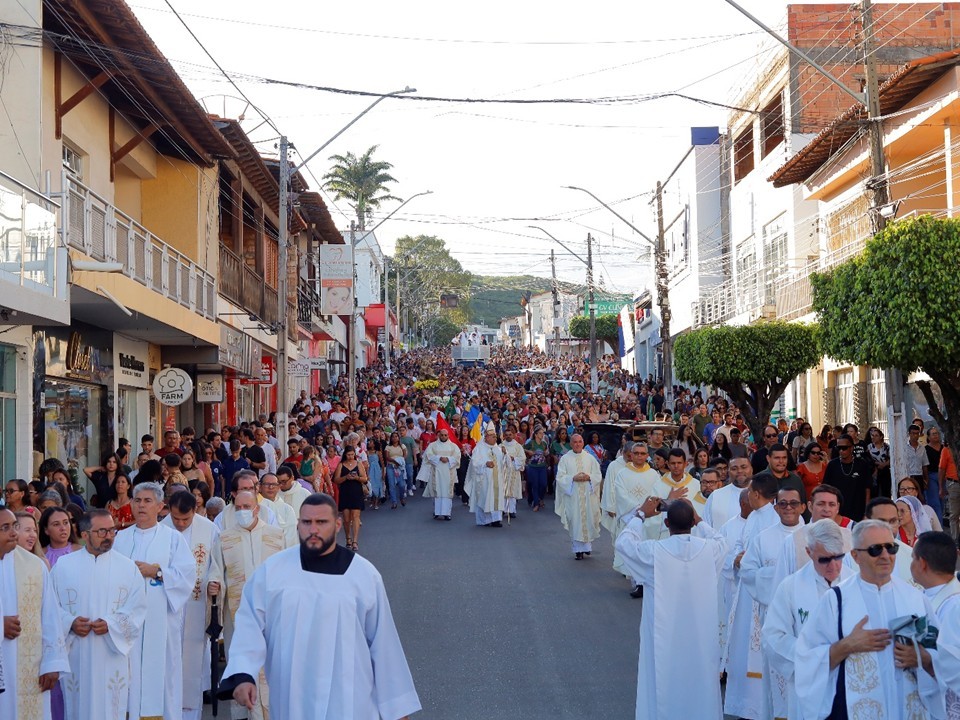 A Diocese de Caetité celebrou, neste domingo (28), o encerramento do Ano Santo Jubilar com uma solene e expressiva manifestação de fé, que reuniu fiéis de todas as 41 paróquias desta Igreja particular. A celebração teve início em frente ao Ginásio de Esportes Hélio Negreiros, de onde os participantes seguiram em caminhada penitencial até a esplanada da Catedral Senhora Sant’Ana. O momento foi marcado por oração, silêncio e espírito de comunhão, recordando o caminho de conversão vivido ao longo de todo o Ano Jubilar.