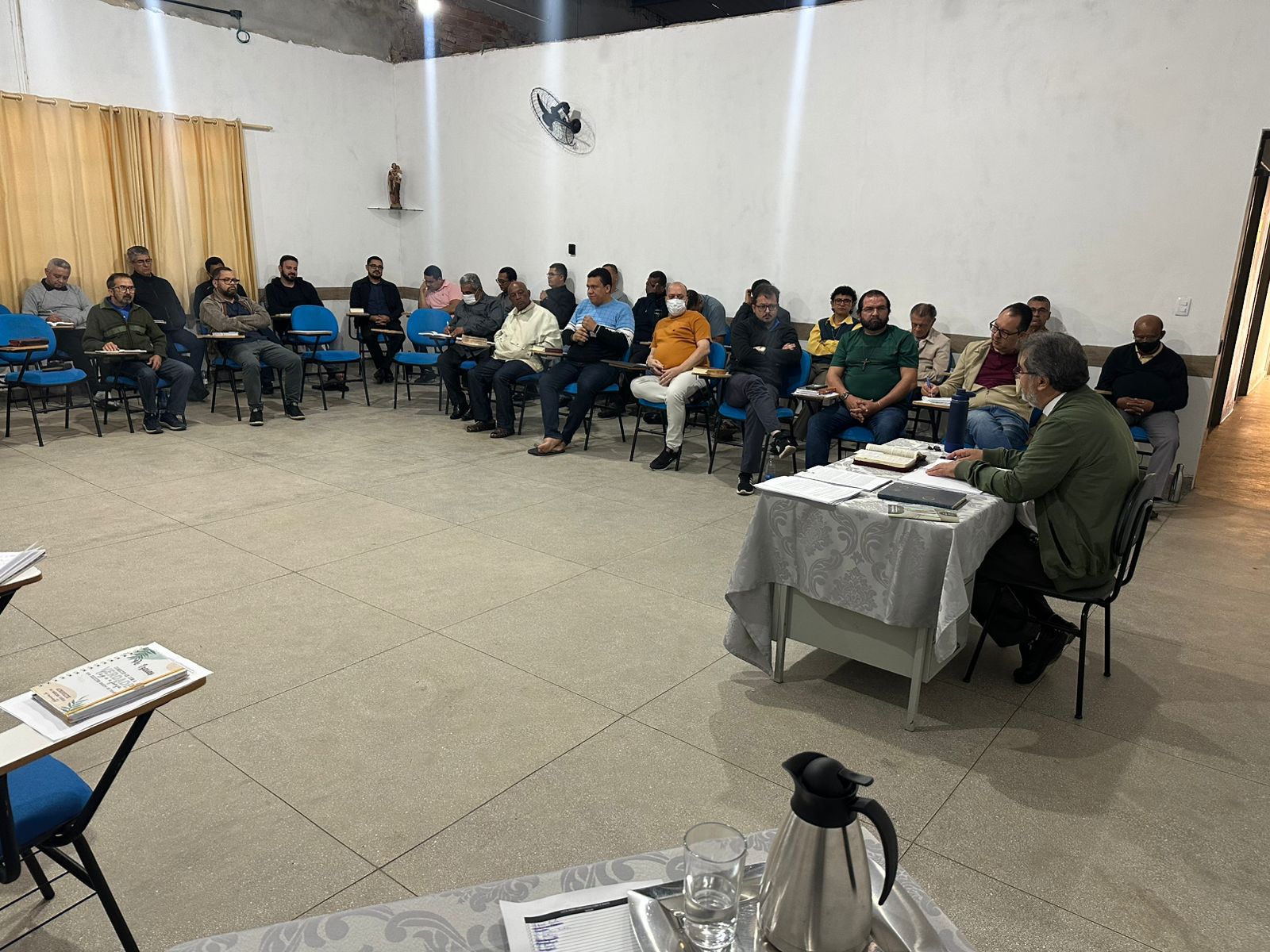 O retiro foi conduzido por Dom Moacir com muita profundidade. Ele iniciou dizendo que “Deus fala através da Igreja e a Igreja fala através dos seus Pastores”. No retiro, Dom Moacir explicitou a importância da intimidade com Deus que o sacerdote é convidado a buscar, através de uma vida profunda de oração e identificação com o Senhor.