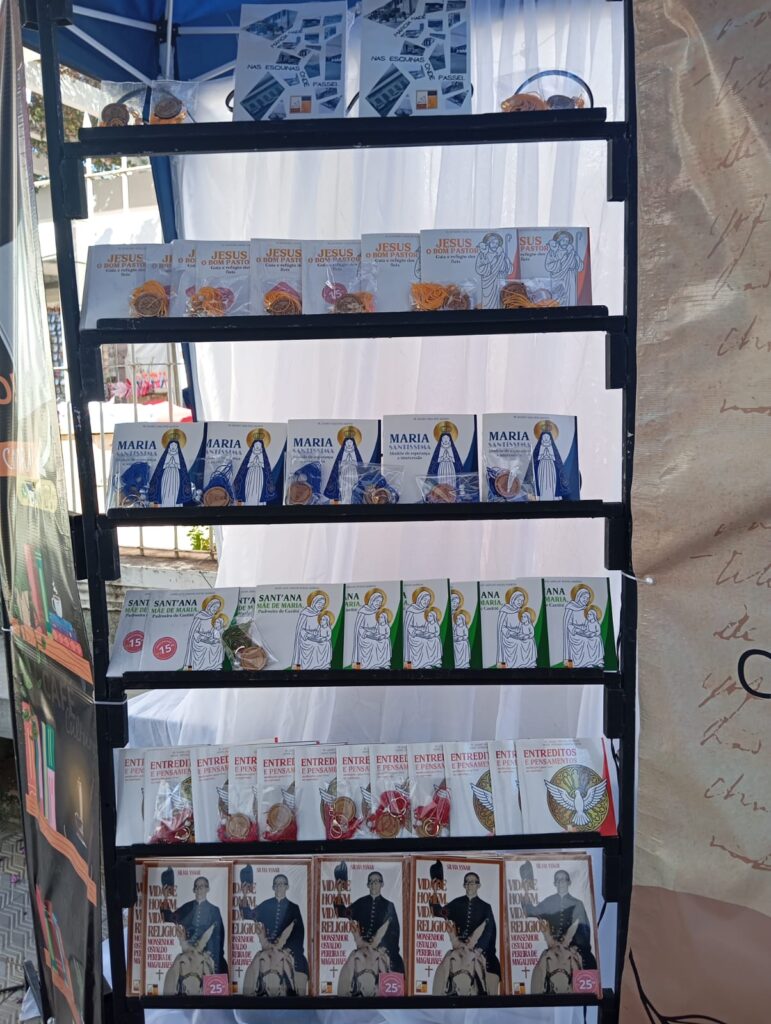 Durante o evento, a Editora Café com Letras marcou presença com um stand montado na entrada da Catedral, oferecendo aos fiéis a belÃssima Coleção Mensageiros da Esperança. A obra, fruto de uma parceria com a Diocese de Caetité e com a colaboração de diversos padres e lideranças católicas, apresenta livros que expressam profunda espiritualidade, devoção mariana, catequese e reflexão pastoral. Cada volume é um verdadeiro testemunho de fé e compromisso com a missão evangelizadora da Igreja, traduzindo em palavras a esperança que sustenta o povo de Deus.