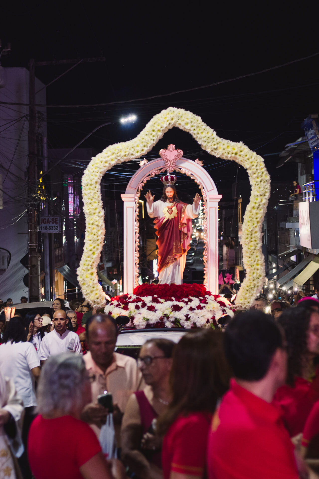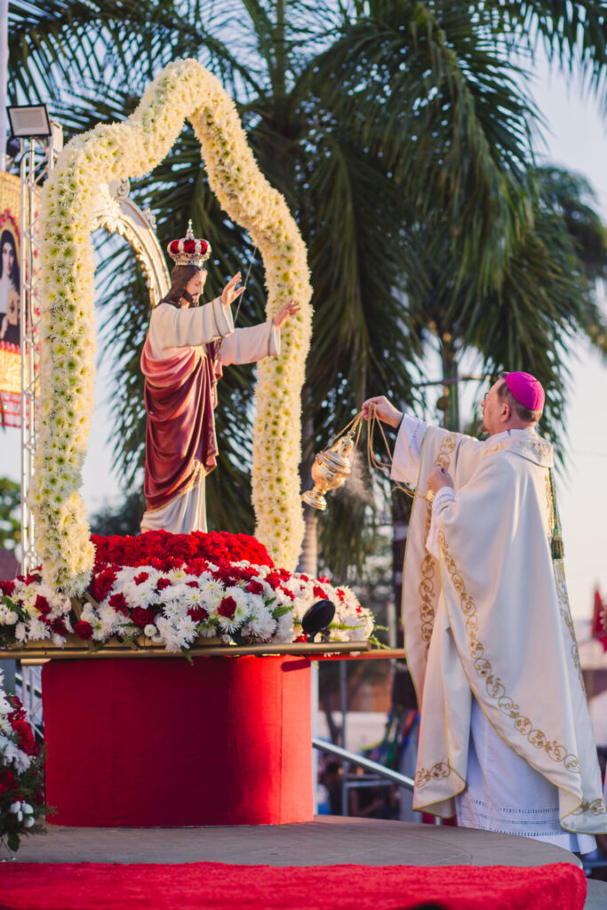 Ao final da celebração, uma gigantesca procissão percorreu algumas ruas da cidade acompanhada das imagens dos padroeiros do setor Moisés e dos estandartes das comunidades da zona rural. Uma verdadeira expressão de fé e devoção ao amado padroeiro Sagrado Coração de Jesus.