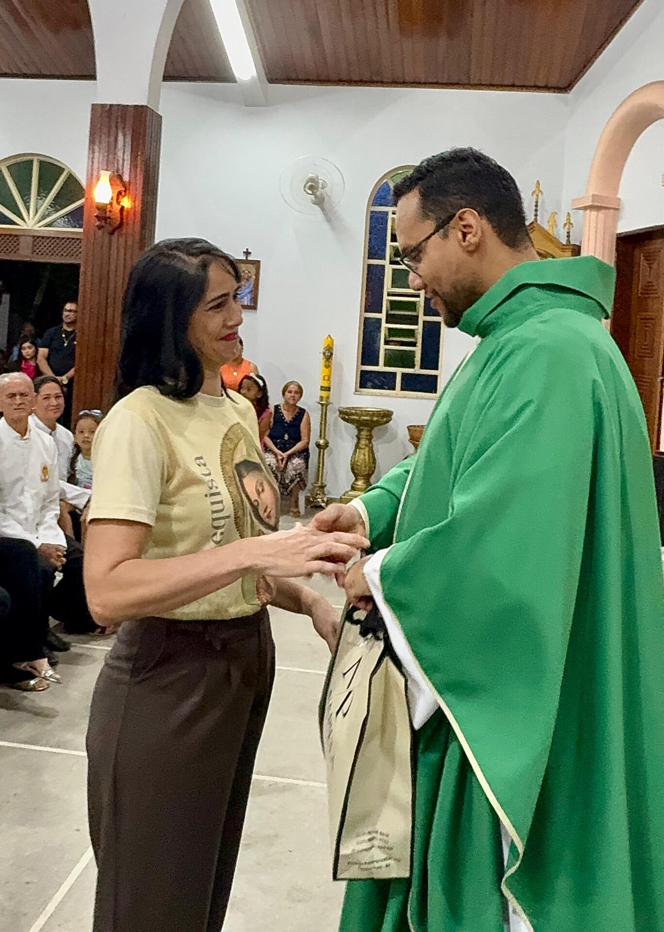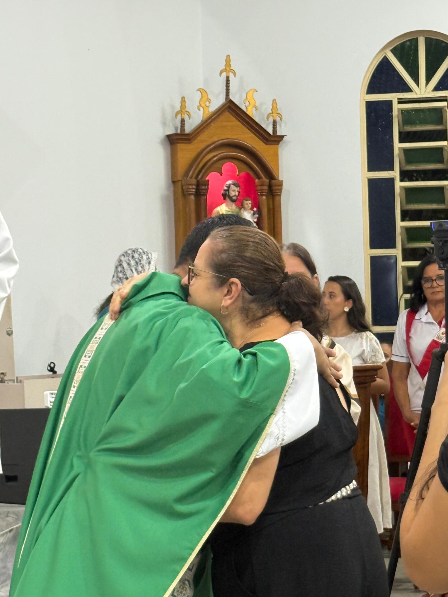 “Vimos a dureza se tornar carinho e a insegurança dar lugar a um pastoreio firme e amoroso”, dizia a mensagem, que agradeceu ao padre por ter sido um verdadeiro pastor que cuidou e educou a comunidade na fé. Estiveram presentes também a mãe do sacerdote, Dona Neli, e sua irmã, Maria Rita, que receberam o carinho da assembleia.