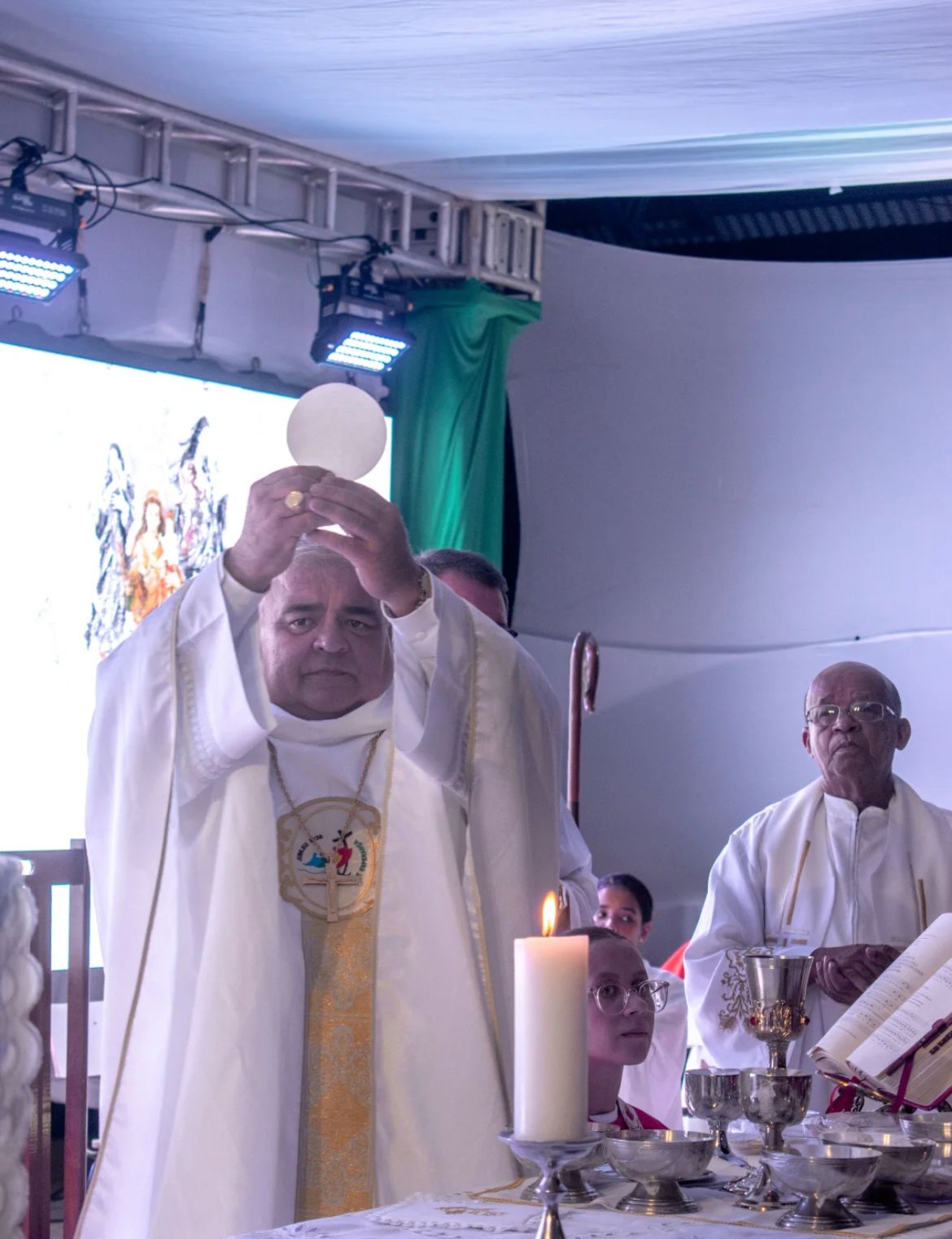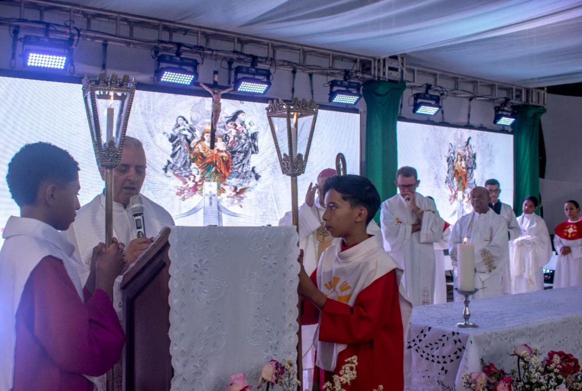 A celebração foi presidida pelo bispo diocesano, Dom José Carvalho, e concelebrada por monsenhor Osvaldo, padre Osvaldino Barbosa e pelo pároco padre Mário Peira. Em sua homilia, Dom Carvalho destacou a importância de cultivar a esperança no cotidiano cristão, ressaltando Maria como exemplo de fé, coragem e confiança em Deus.