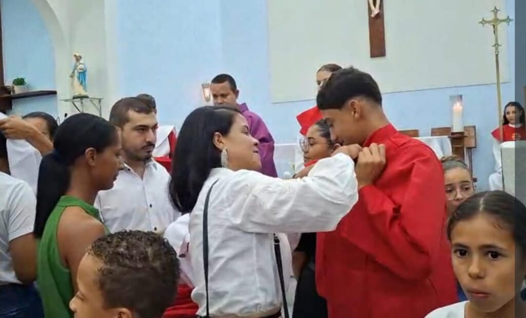 A Paróquia Santa Rosa de Viterbo, em Guajeru, realizou a investidura dos novos coroinhas na noite da quarta-feira, 10 de dezembro, durante a missa das 19h30min na Igreja Matriz. A celebração, conduzida pelo Vigário Padre Ademilson Jesuino da Silva, marcou a integração de 26 novos coroinhas. Após o tempo de preparação, esses adolescentes receberam a bênção para exercerem o serviço litúrgico, reforçando o vínculo com a comunidade e a fé católica.