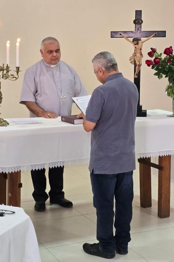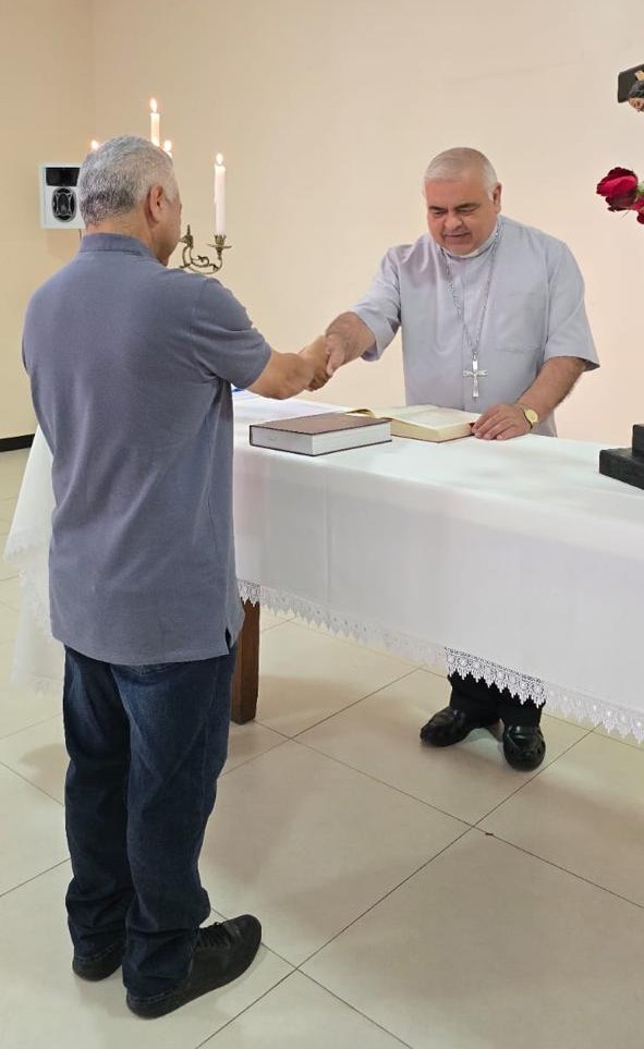 O Pe. José Afonso de Lima, atualmente pároco da Paróquia Senhor Bom Jesus de Malhada de Pedras, foi incardinado à Diocese de Caetité, na manhã desta terça-feira (9), durante reunião do Vicariato Rainha da Paz, realizada no salão paroquial da Paróquia Bom Jesus, em Brumado. O ato de incardinação foi conduzido pelo bispo diocesano, Dom José Roberto Silva Carvalho, e também contou com a presença do vigário do vicariato, Pe. Marcus VinÃcius Silva Carvalho, e de outros padres do vicariato.