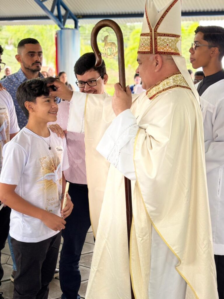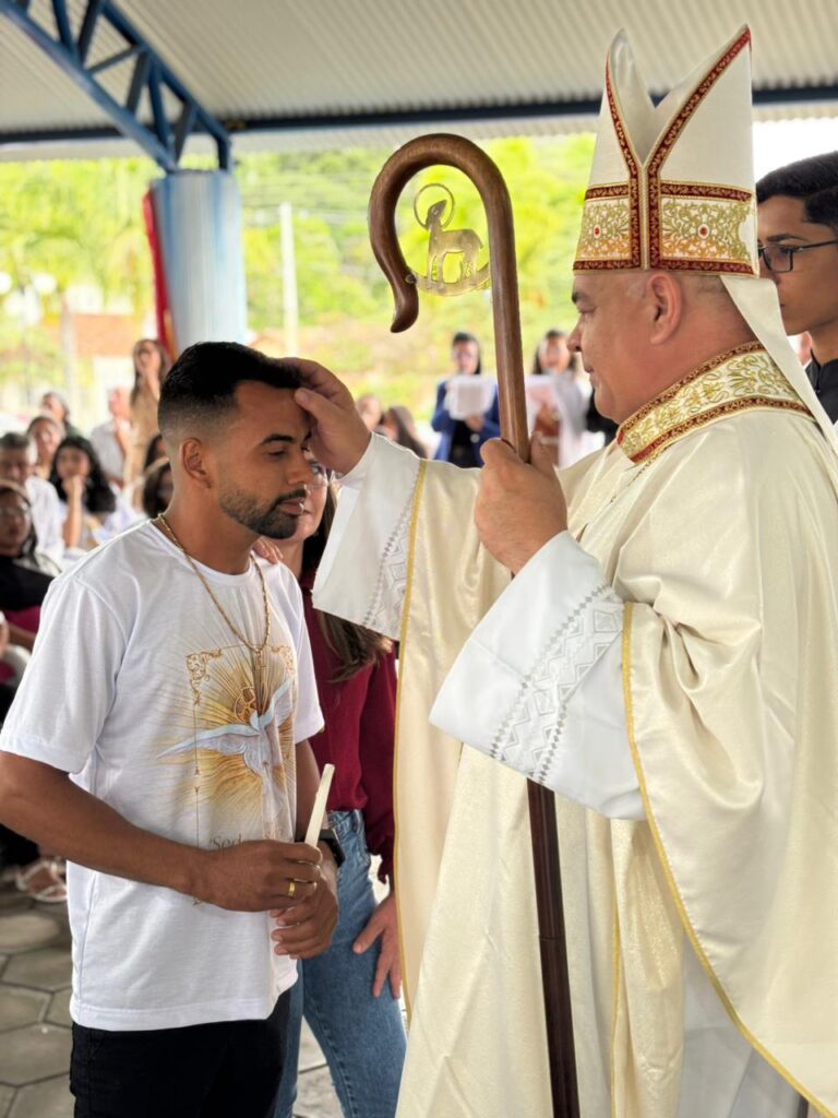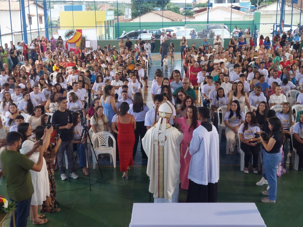 Neste domingo (23), a Paróquia Nossa Senhora da Boa Viagem e Almas viveu um dia de profunda alegria e fervor espiritual com a celebração do Sacramento da Confirmação (Crisma). As cerimônias aconteceram às 9h, no Espaço de Eventos Santa Dulce dos Pobres e São Sebastião, em Jacaraci, e às 16h, no distrito de Irundiara. As Missas foram presididas pelo Bispo Diocesano, Dom José Roberto Silva Carvalho, e concelebradas pelo Administrador Paroquial, Padre Matheus Augusto Silva Souza.
