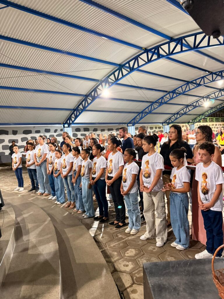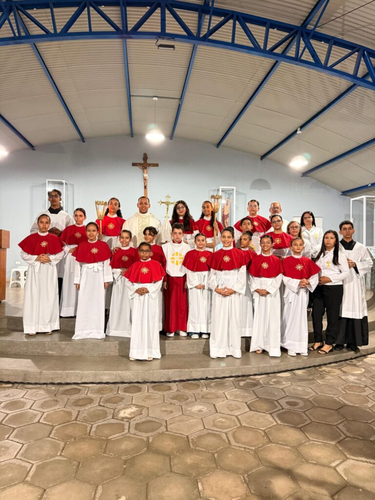 Encerrando o dia, às 19h30, foi celebrada a Santa Missa na Igreja Matriz, presidida pelo Padre Matheus Augusto. Durante a celebração, aconteceu a investidura de 16 novos coroinhas, que passaram a servir ao altar com dedicação e responsabilidade, assumindo seu papel na vida litúrgica da paróquia.
