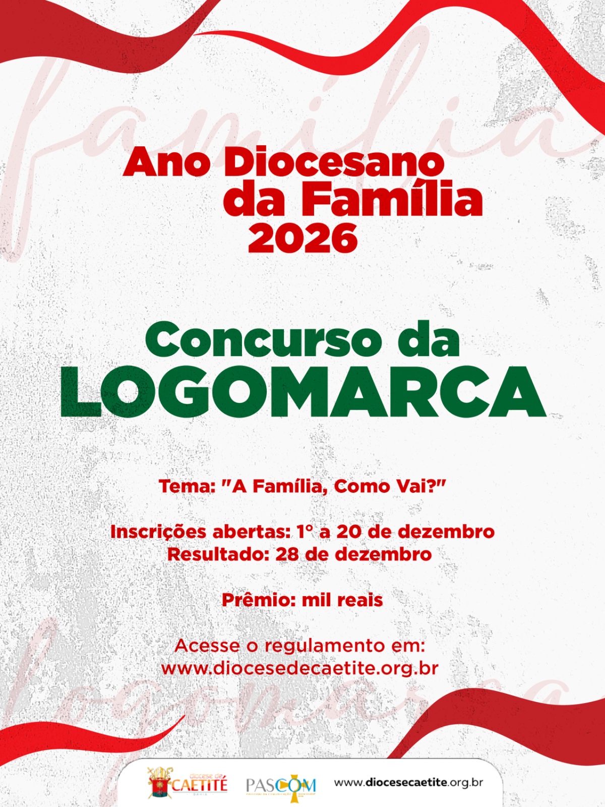 Encerram neste sábado, 20 de dezembro, as inscrições para o Concurso de Logomarca do Ano Diocesano da Família. Se você deseja participar, acesse aqui a página de inscrição e confira todas as informações no regulamento. O concurso é organizado pela Pascom Diocesana e a Coordenação […]
