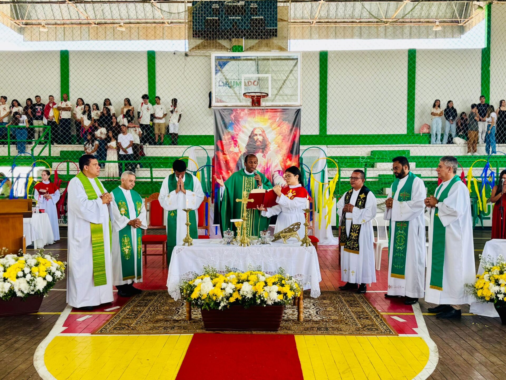 A presença da juventude foi marcante, inclusive da cidade anfitriã. O evento começou às 8h com a Celebração da Santa Missa, com a presença dos padres Eduardo, Elber, Osvaldino e Pe. Mário.